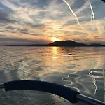 The beachfront Ket Szobas, Teraszos, Kertes Vendeghaz Villa is located about 20 minutes' walk from Szabadstrand Swimming Lake and provides water sports activities, hiking, and fisheries for active guests. Located about 5 minutes by car from Exaltation of the Cross Church, this 1-bedroom villa provides Wi-Fi and complimentary private parking.